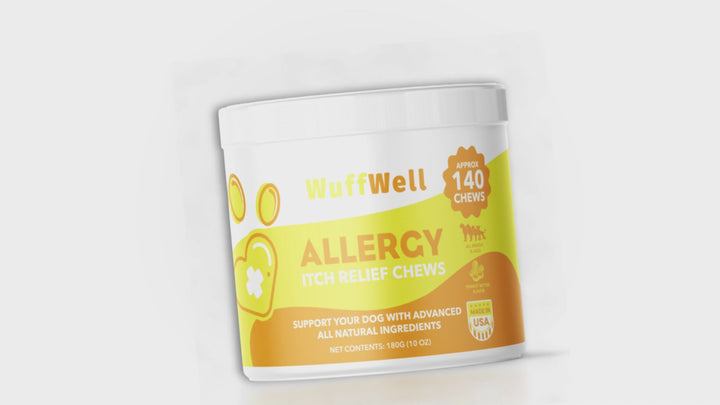 • Relieve Your Dog's Allergies Naturally: With WuffWell Allergy Chews for dogs, you can provide effective dog allergy relief without harsh chemicals. These dog allergy chews are designed to reduce itching and scratching, helping your furry friend feel comfortable and happy.