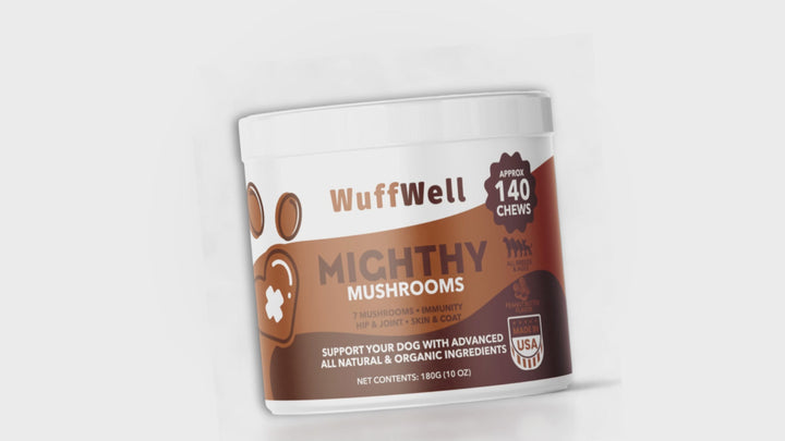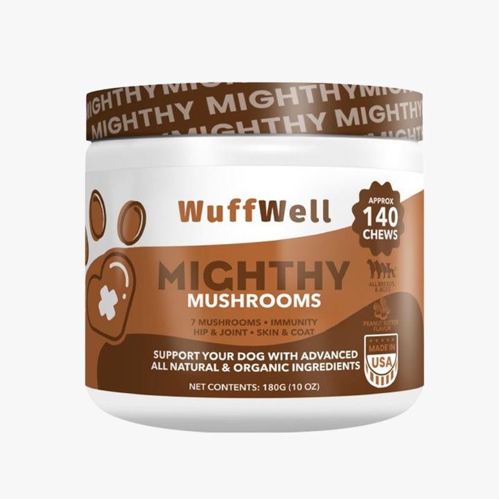 Vets recommend WuffWell Mighty Mushroom Chews for dogs needing immune, joint, skin, or digestive support. With Turkey Tail, Maitake, and Reishi mushrooms, they boost immunity; green-lipped mussel and salmon oil aid joints and skin; and probiotics promote gut health. Safe for daily, long-term use in all dogs. Consult your vet before use if your dog has health issues or takes medication.